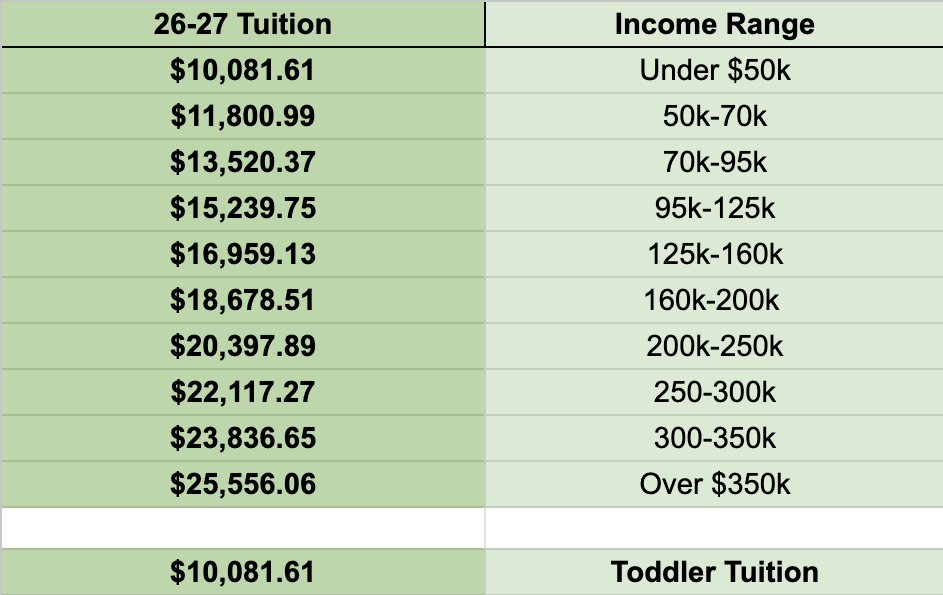 *Sliding Scale / Financial Aid will not be available for the Toddler program.